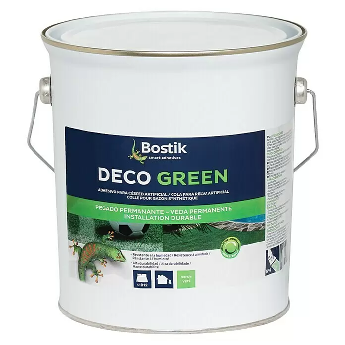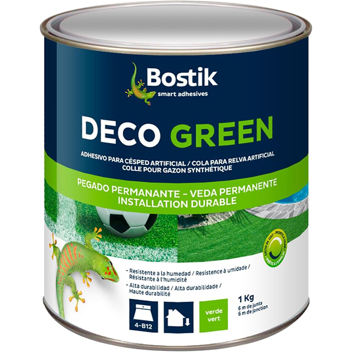 Adhesivo base poliuretano de dos componentes, color verde, para el encolado dee césped artificial. Uso recomenedado en jardinería, paisajismo, pistas de paddle y tenis, campos de futbol. Fácil aplicación. Uso interior y exterior. Es resistente a altas temperaturas, hasta +120 ºC. No contiene agua ni disolventes. Tiempo abierto de 35 minutos a 20ºC.