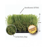 PRECIO POR METRO CUADRADO Es nuestro césped de 38mm de altura más suave y mullido.  Cuenta con la tecnología SoftMax dotando a la fibra de una suavidad increíble y creando el espacio verde más cómodo de tu hogar. Además, mezcla fibras texturizadas con efecto raíz, bicolor con rizo verde y beige, que le aporta una mayor naturalidad a la superficie donde está instalado.